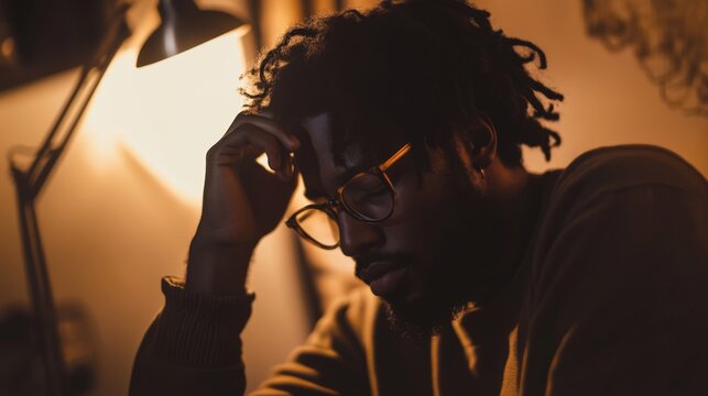 Distressed young woman in thoughtful pose conveying concern