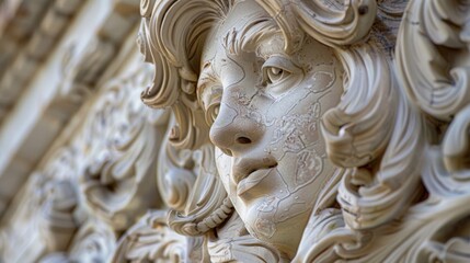 Split face of a mannequin representing aging changes with cracked skin texture on one side and smooth complexion on the other in neutral tones