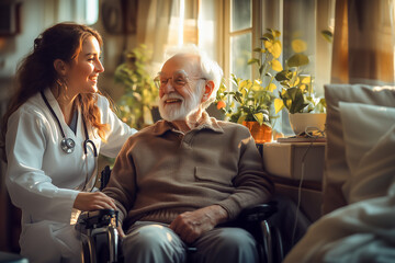 Compassionate Doctor Caring for Elderly Patient in a Warm Home Setting
