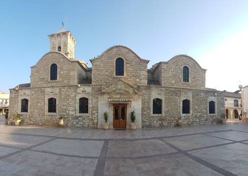 Church of Agion Anargyron showing its terracotta dome and bell towers in Paphos, Cyprus