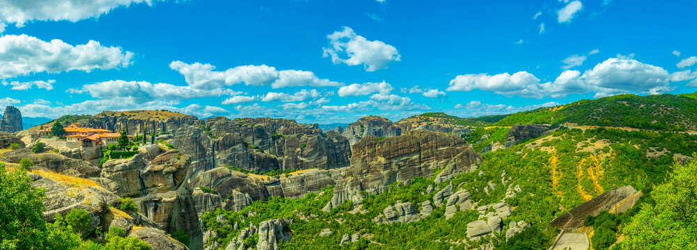 Monasteries of Varlaam, Roussanou, Saint Nicholas Anapavsa and great meteor monastery at Meteora, Greece