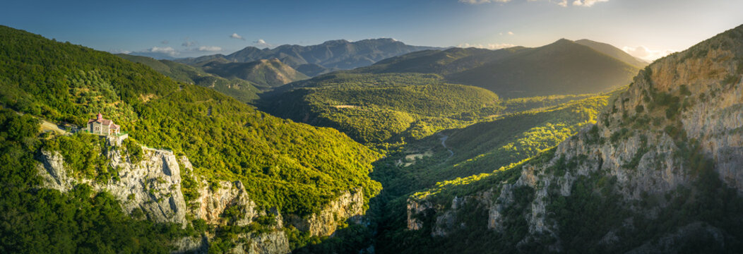Photo of the Monastery of Saint Stephen, an Eastern Orthodox monastery that is part of the Meteora monastery complex in Thessaly, Greece. In 1961, the monastery was converted into a nunnery.