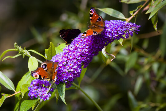 Peacock butterfly on a flower of the butterfly bush (Aglais io)