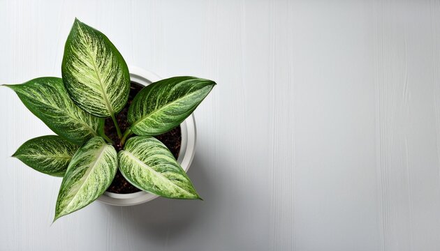 aglaonema plant in white pot top view with copy space