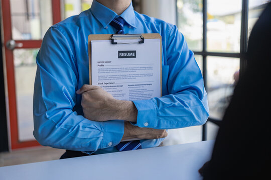 Business people fill resume application information on the desk, presents the ability for the company to agree with the position of the job.