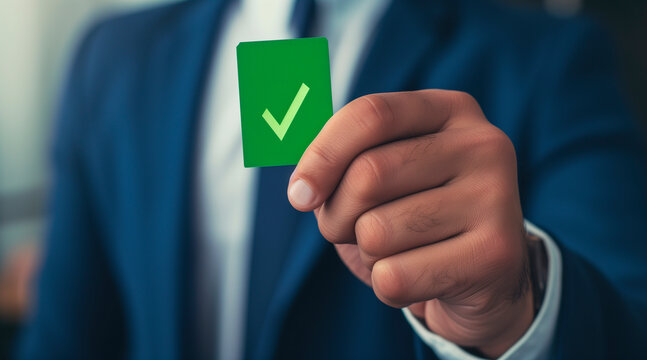 Closeup of wooden cubes with letters and word approve on table with unrecognized man in formal clothing of suit and tie sitting with hands placed on desk during a job interview