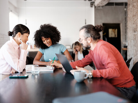 Lawyer, broker or HR manager signing a contract agreement with client or employee. Financial advisor asking for womans signature for insurance, legal paperwork or claim document