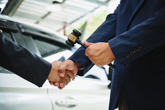 Customer shaking hands with mechanic in repair garage