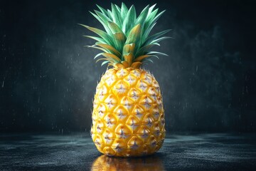 Pineapple standing alone on a wet surface in a dramatic lighting setting
