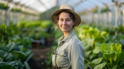 The Agronomists Joy Standing before a field that a testament to advanced agronomic research, a woman in her uniform smiles brightly at the camera Her attire