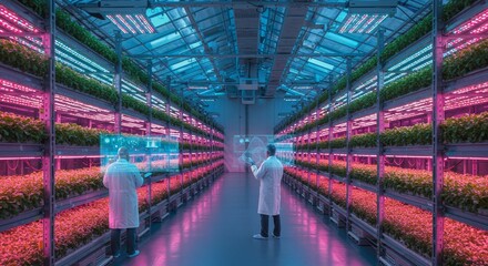 Innovative Vertical Farming: Scientists Monitoring Plant Growth with Technology