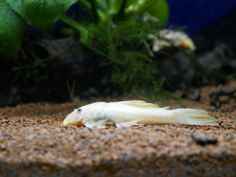 Pez Ancistrus l144 de ojos azules en acuario.