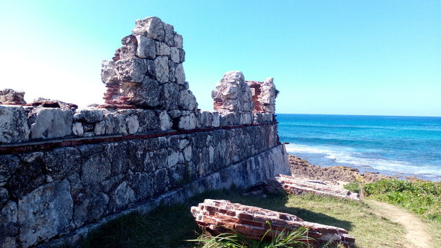 Historic abandoned lighthouse ruins at Aguadilla, Puerto Rico