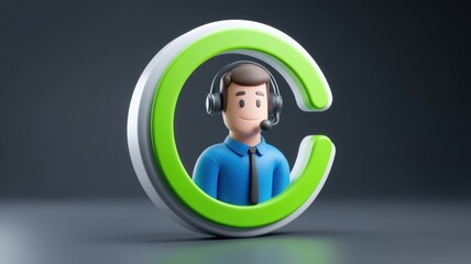 AI agent, customer service. Playful customer support icon with headset and circular design.