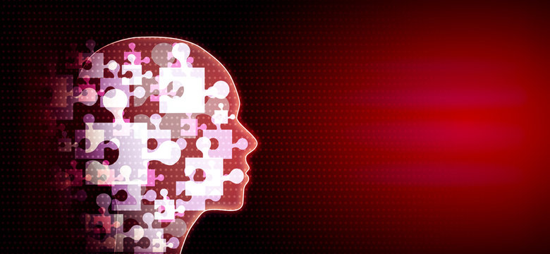 Digital brain concept illustrating artificial intelligence and the flow of information through a human head silhouette