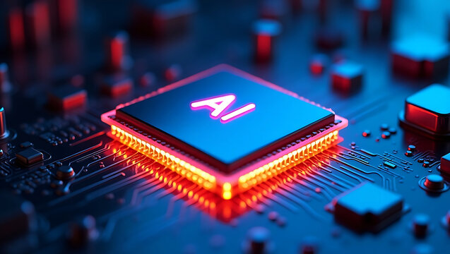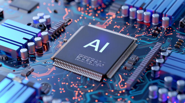Computer chip digital circuit with the letters AI on it, artificial intelligence technology and innovation concept