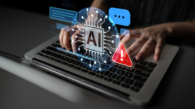 AI interface displays prompt error and warning alerts, managing incorrect outputs and hallucination risks for safe artificial intelligence system operation