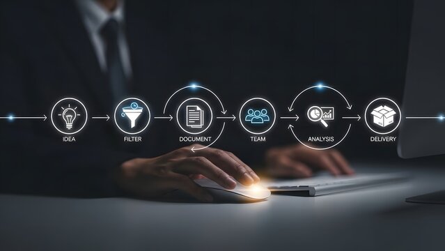 AI workflow optimization concept. showing hand using stylus on digital interface with AI chip, cloud computing, and workflow icons representing automation and machine learning innovation.