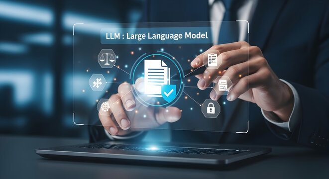 Future of AI: Professional Engages with LLM Data Management on Virtual Screen