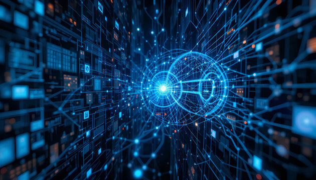 Futuristic digital interface with ai and data networks
