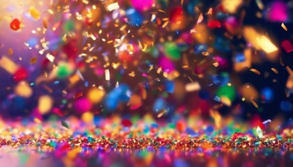 Close up photo of many party people dancing purple lights confetti flying everywhere nightclub event hands raised up wear shiny clothes, Generative AI