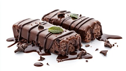 Delicious chocolate bars drizzled with rich chocolate. These treats offer a moment of indulgence. Perfect for chocolate lovers everywhere. Generative AI.