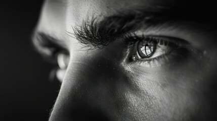 Portrait of a Man. Close up. Dark portrait of one handsome confident young man. AI Generative
