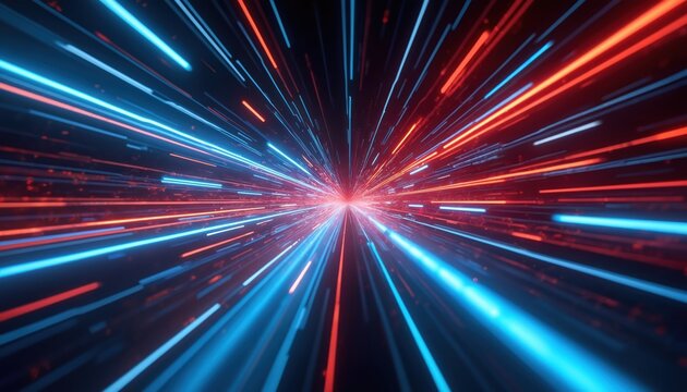 Cyberpunk woman with neon shards in futuristic digital tunnel