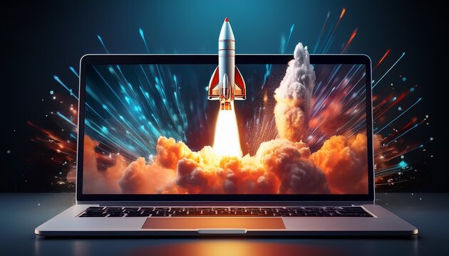 space rocket launch visual from a laptop screen generated by ai