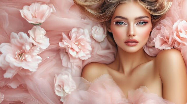 Ai-generated beautiful lady face with natural makeup and smooth skin
