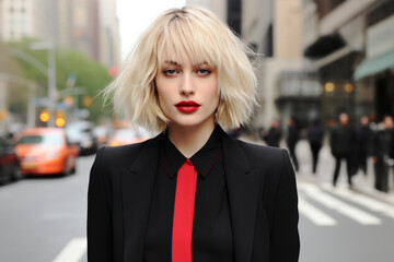 Ai-generated portrait with futuristic neon stripes