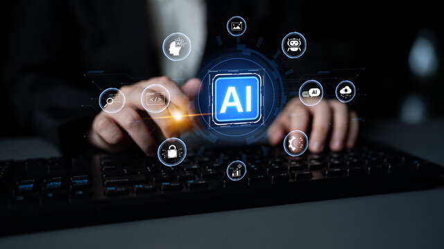 Ai technology concept with digital brain and data interface