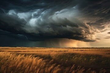 a stunning panoramic view of beautiful meadow featuring a twister ai generated