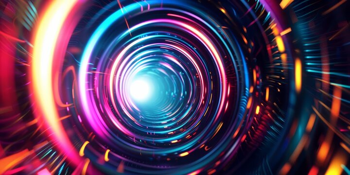 A picture of a colorful shiny tunnel in the style of galaxy and stars and space vibes, Abstract vortex and road hole, swirling and twirling neon walls, AI generated.