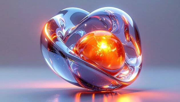 Futuristic AI core made of glass and liquid metal on solid background 3D render.