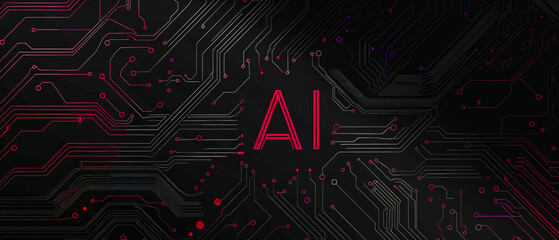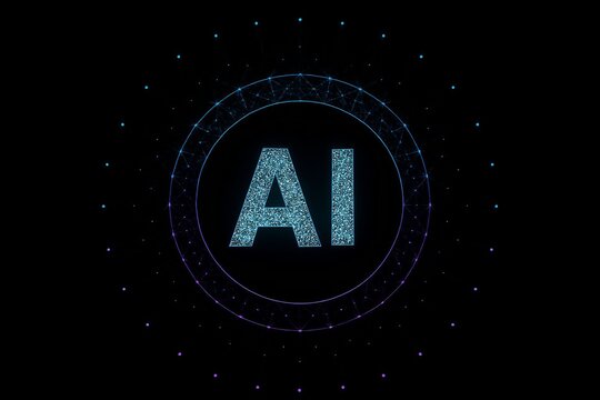Futuristic glowing ai logo with digital circuit patterns on a dark background