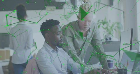 Data science and big data technology. Data scientist computing, analysing and visualizing complex data set on computer. Data mining, artificial intelligence, machine learning, business analytics.