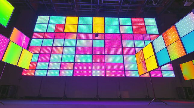AI Generated image of Colorful led display panels create a vibrant and modern backdrop