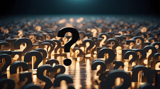 Two 3D speech bubbles, one black with green ellipsis and one clear with a purple question mark, representing communication and inquiry.