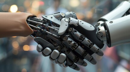 Arm-wrestling showdown between muscular human forearm and industrial robotic prosthetic