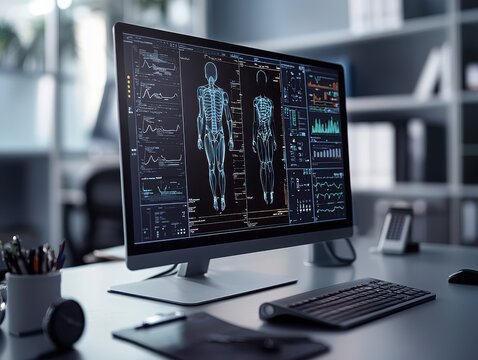 Ai system analyzing patient symptoms via holographic interface in a modern medical office health technology visualization professional setting innovative healthcare concept