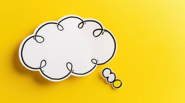 Discover the Link Between Thoughts and Words in an Empty Speech Bubble and Thought Bubble on a Bright Yellow Background.