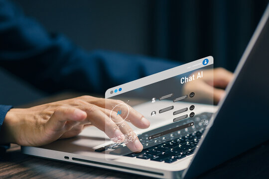 Woman hand typing on laptop computer using Ai chatbot interface searching on internet,Concept symbolizing artificial intelligence,virtual assistant,digital communication,advanced online technology