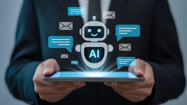 AI Messaging Assistant on Tablet Smart Chatbot and Digital Communication Innovation Concept