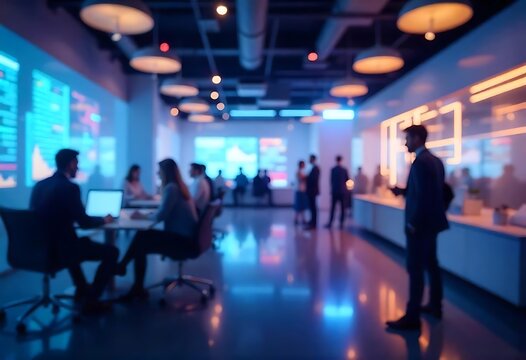 Generative AI captures blurred corporate office with glowing data displays
