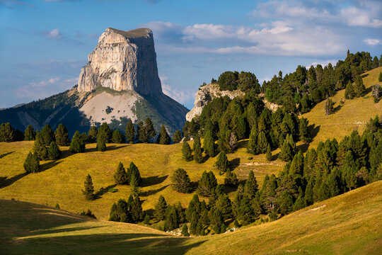 Mont Aiguille in Summer in the Vercors High Plateaus. Vercors Regional Natural Park, Isere, Rhone-Alpes, French Alps, France