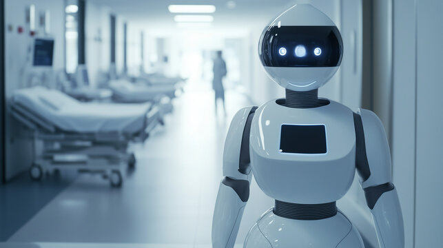AI-powered robot assisting in a hospital, performing tasks with precision to enhance healthcare services