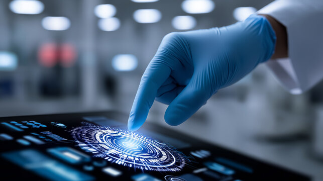 Robotic hand touching a glowing AI interface symbolizing advanced digital intelligence and automation.