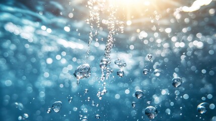 Water Bubbles Rising in a Blue and Sunny Background