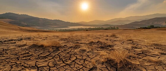 Oppressive heat of a scorching summer day conveyed through shimmering air and harsh sunlight on dry vista